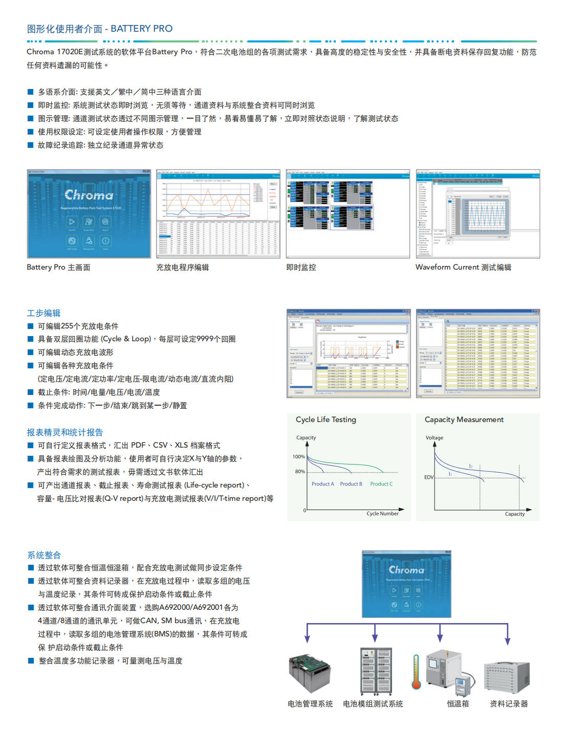 Chroma 17020E系统是专门为二次电池组测试而开发的高精密设备,适合用于电池组续航力试验、产品进出货检验、设计验证、电池组生产线上测试等用途。