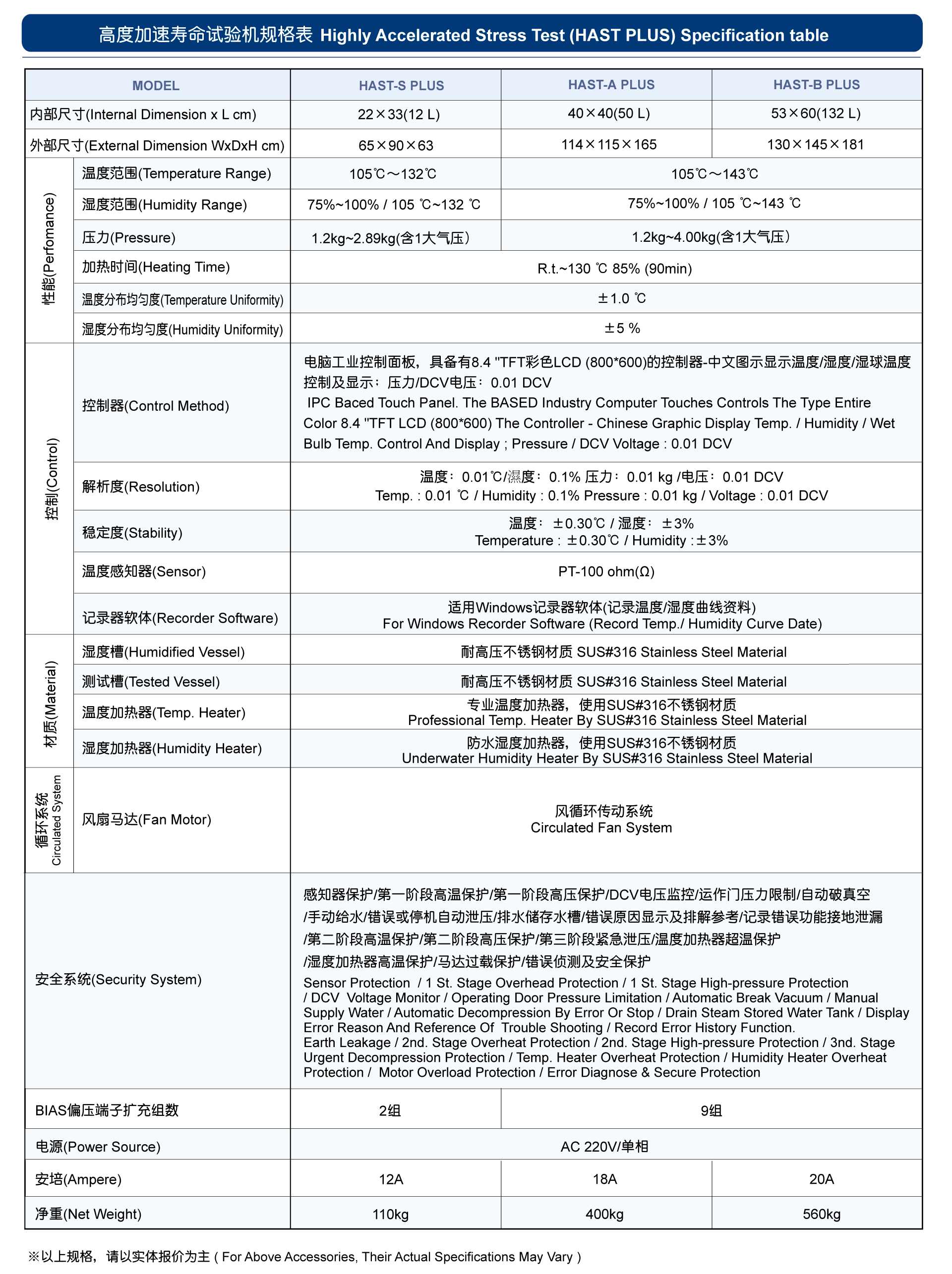 可满足IEC60068-2-66、JESDEC-A110、A118规范要求,3种控制模式包含:不饱和控制(乾湿球温度控制)、不饱和控制(升温温度控制)、湿润饱和控制。